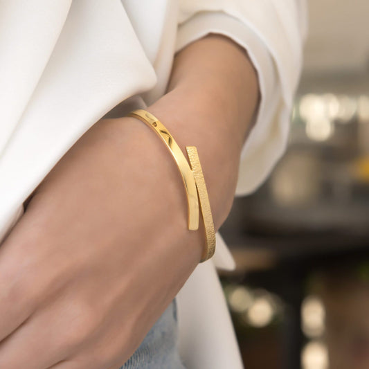 Gold Bypass Open Cuff Bangle