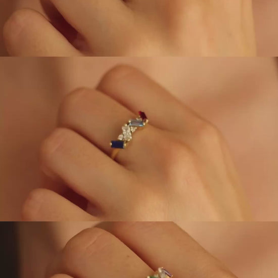 6 Birthstone Baguette Cluster Ring