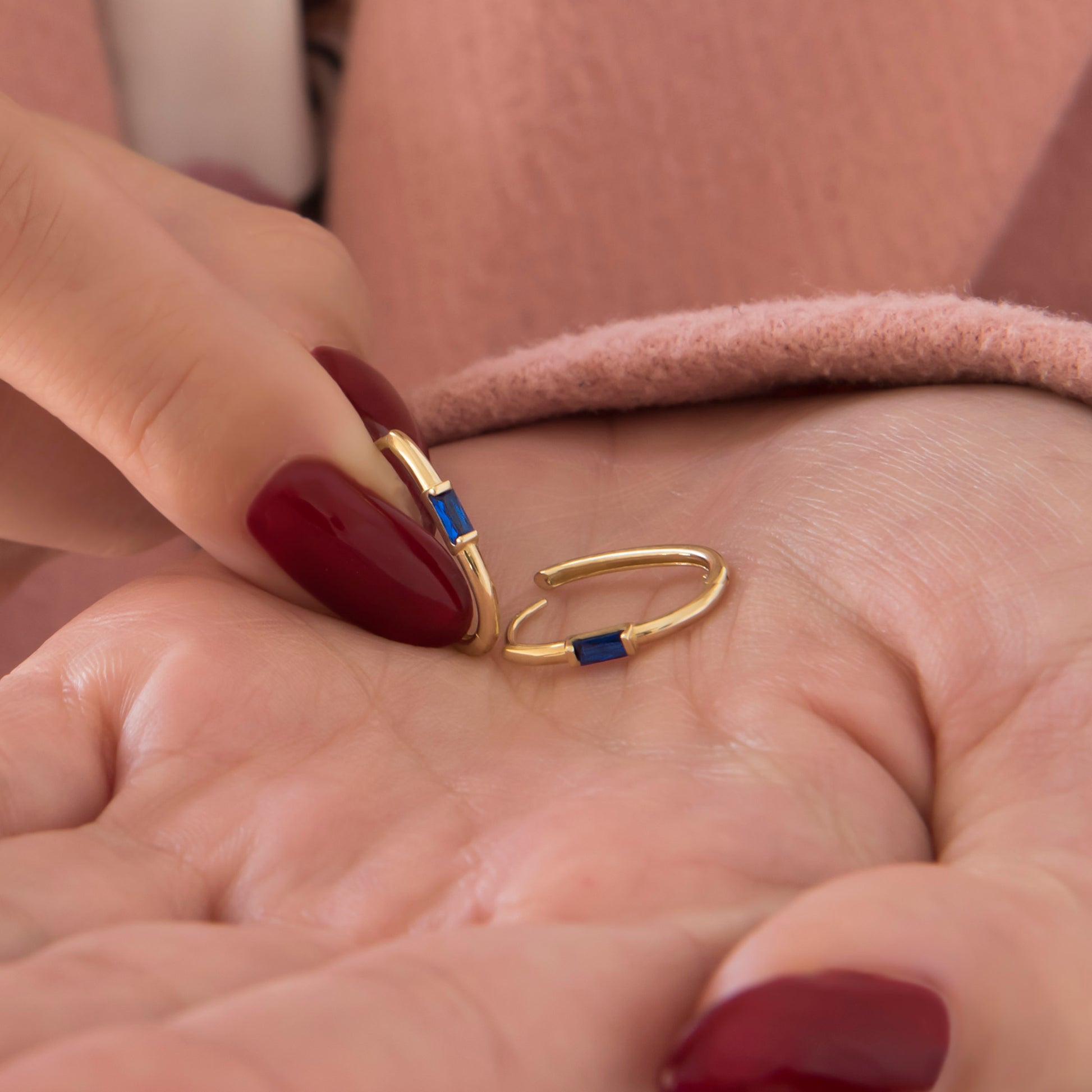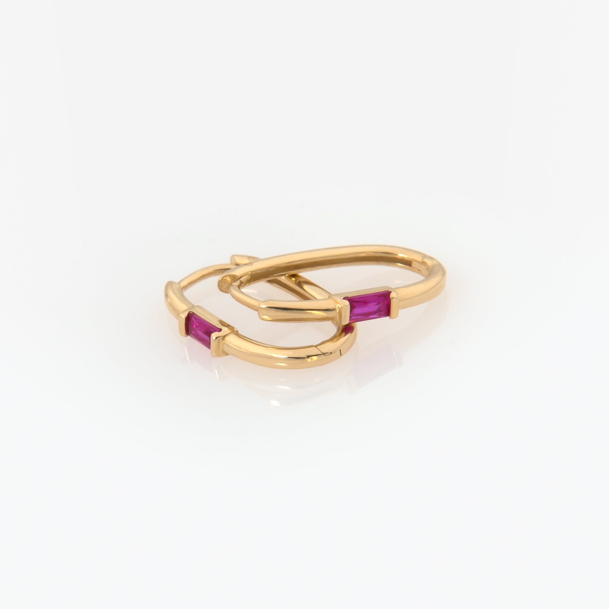 These 14K solid yellow gold latch-back earrings feature a sleek paperclip design accented with a single baguette-cut CZ stone in your choice of four colors. Modern, elegant, and effortlessly versatile, they add a subtle sparkle to any look.
