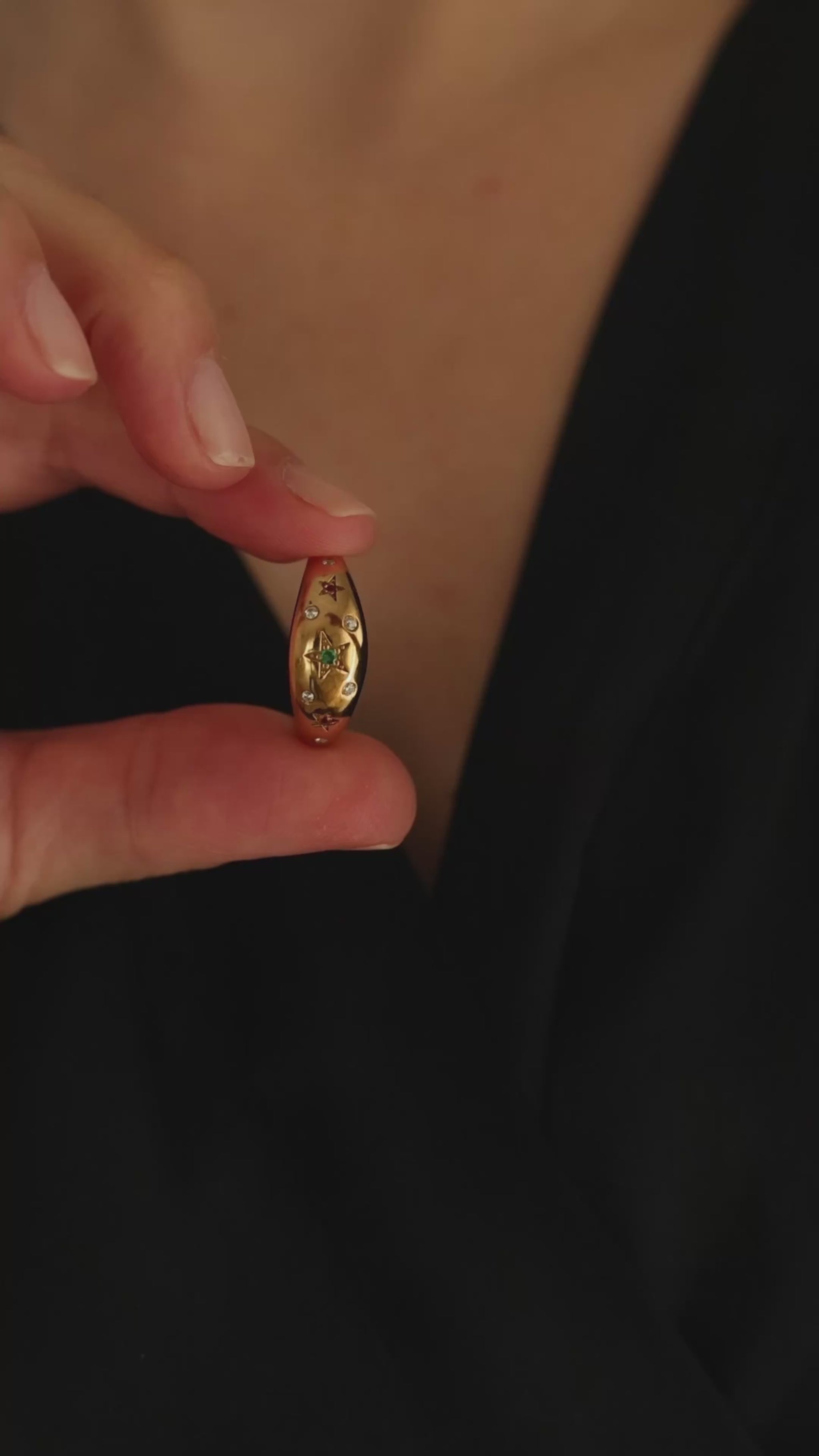 A statement solid gold ring with a unique design inspired by the beauty of the stars during the night. This ring with the birthstones of your choice will add sparkle to any outfit. You can wear it alone or stacked with other rings. A perfect gift idea for your loved ones on any occasion.